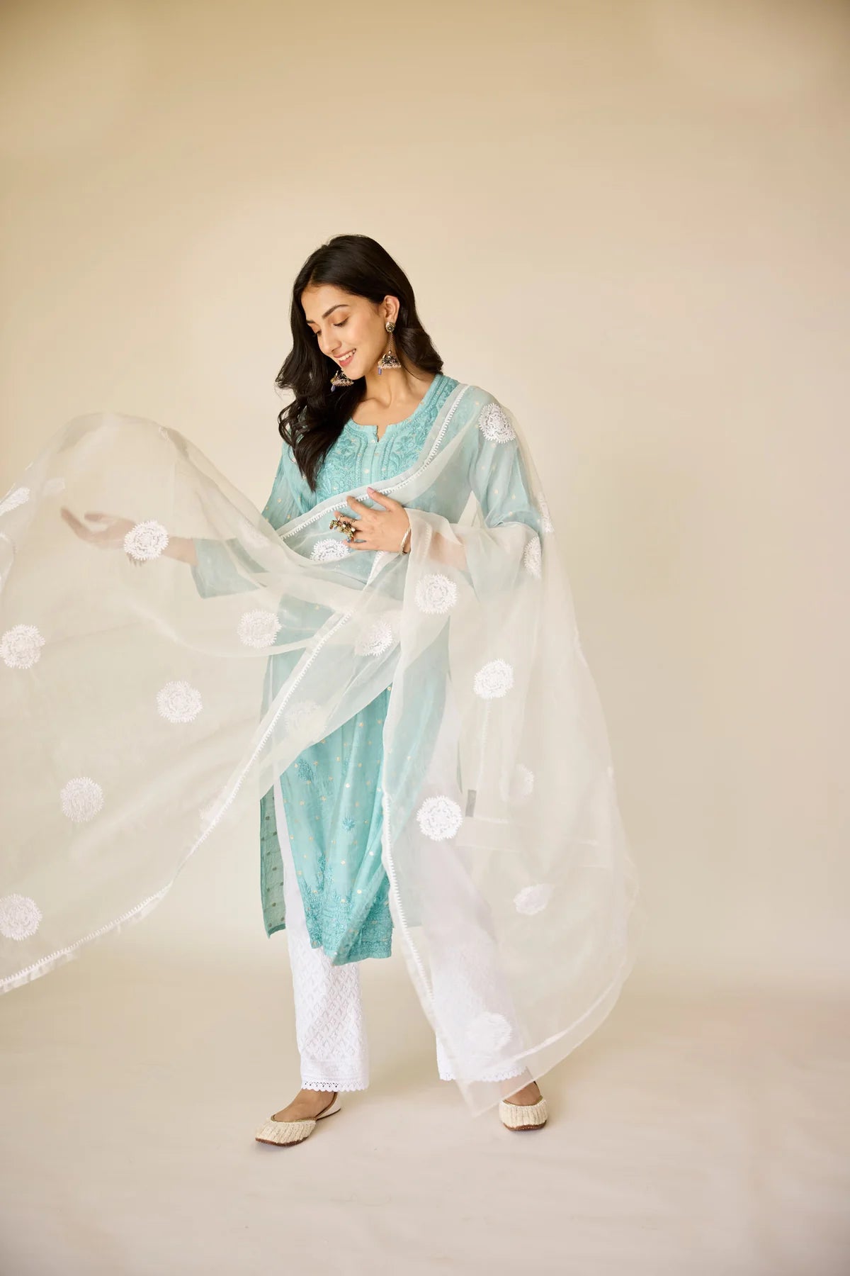 Step into timeless grace with Noor-e-Shahzadi, a pure white dyeable chikankari dupatta that radiates royal elegance. Crafted with delicate hand embroidery, this exquisite piece captures the essence of regal splendor while offering versatile customization to reflect your personal style. Perfect for grand occasions or sophisticated ensembles, Noor-e-Shahzadi is where tradition meets majestic beauty.